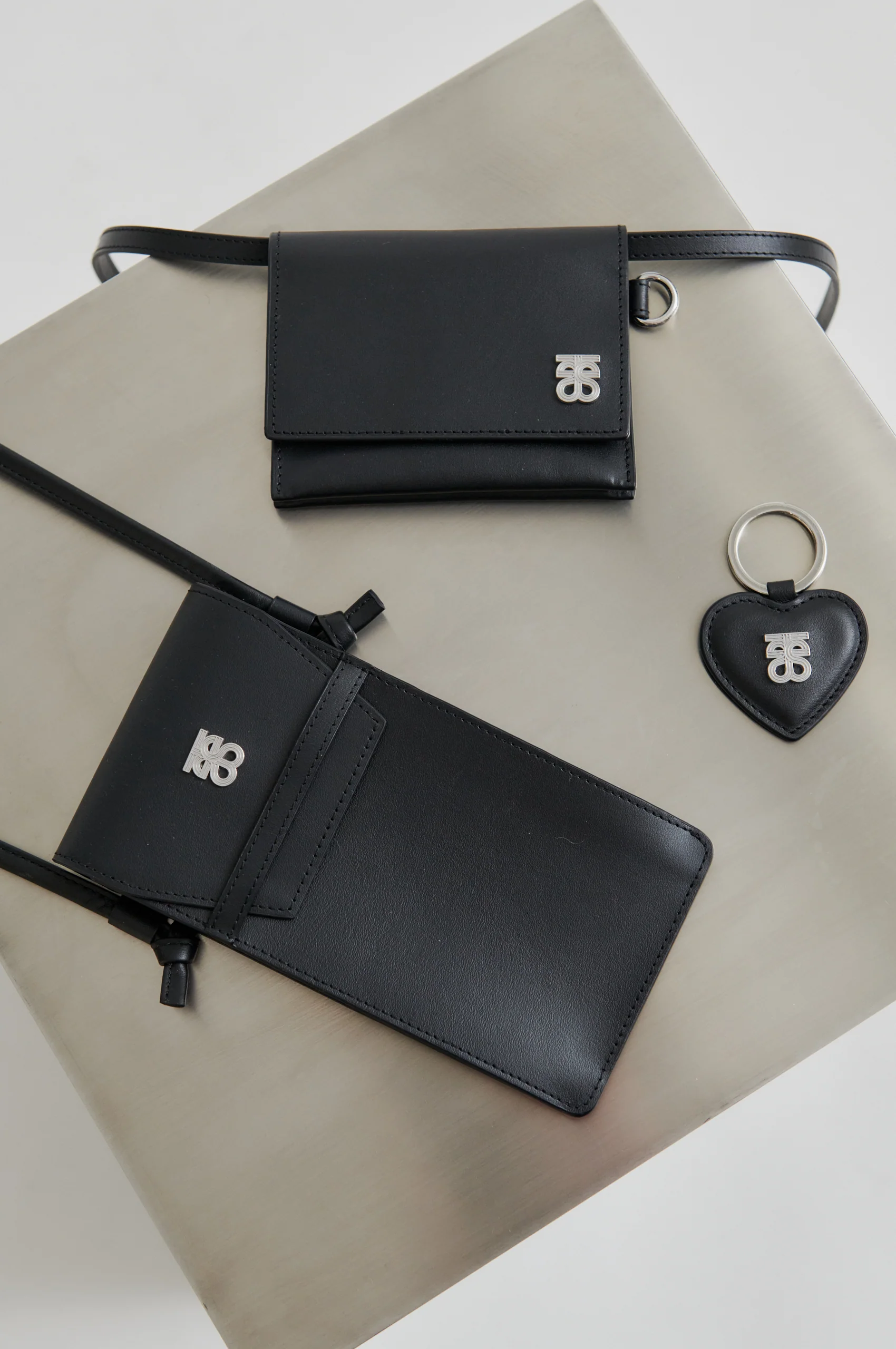 Second Female leather key ring. Featuring a heart-shaped leather fob with silver ring and logo detail on the front.